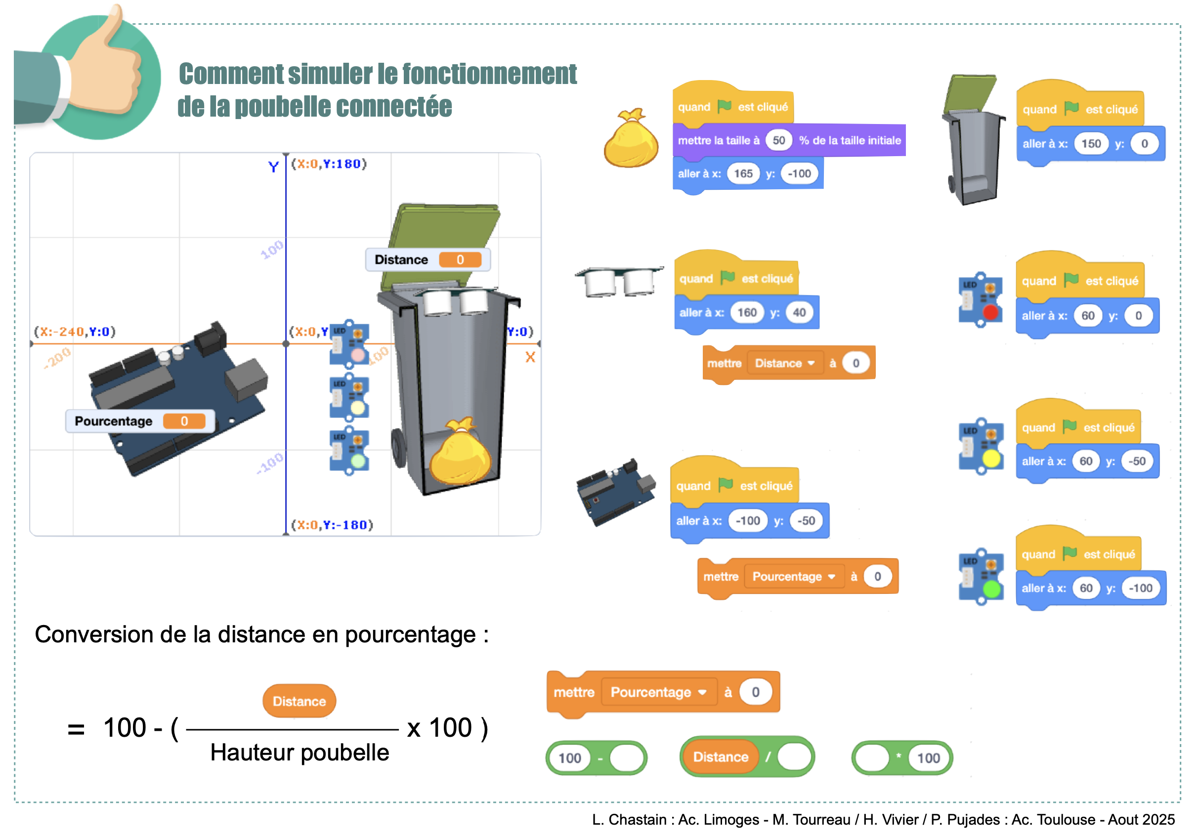 Valider l'algorithme par la simulation du fonctionnement de la poubelle sur le logiciel Scratch. Aide :