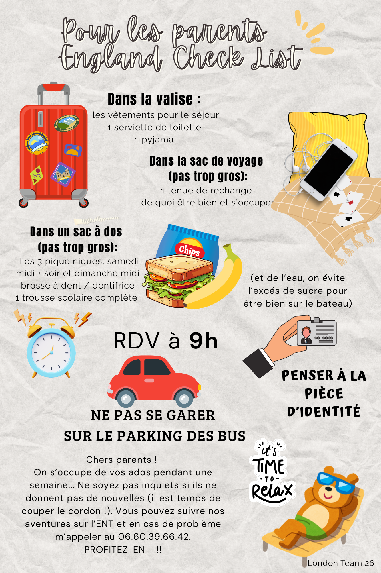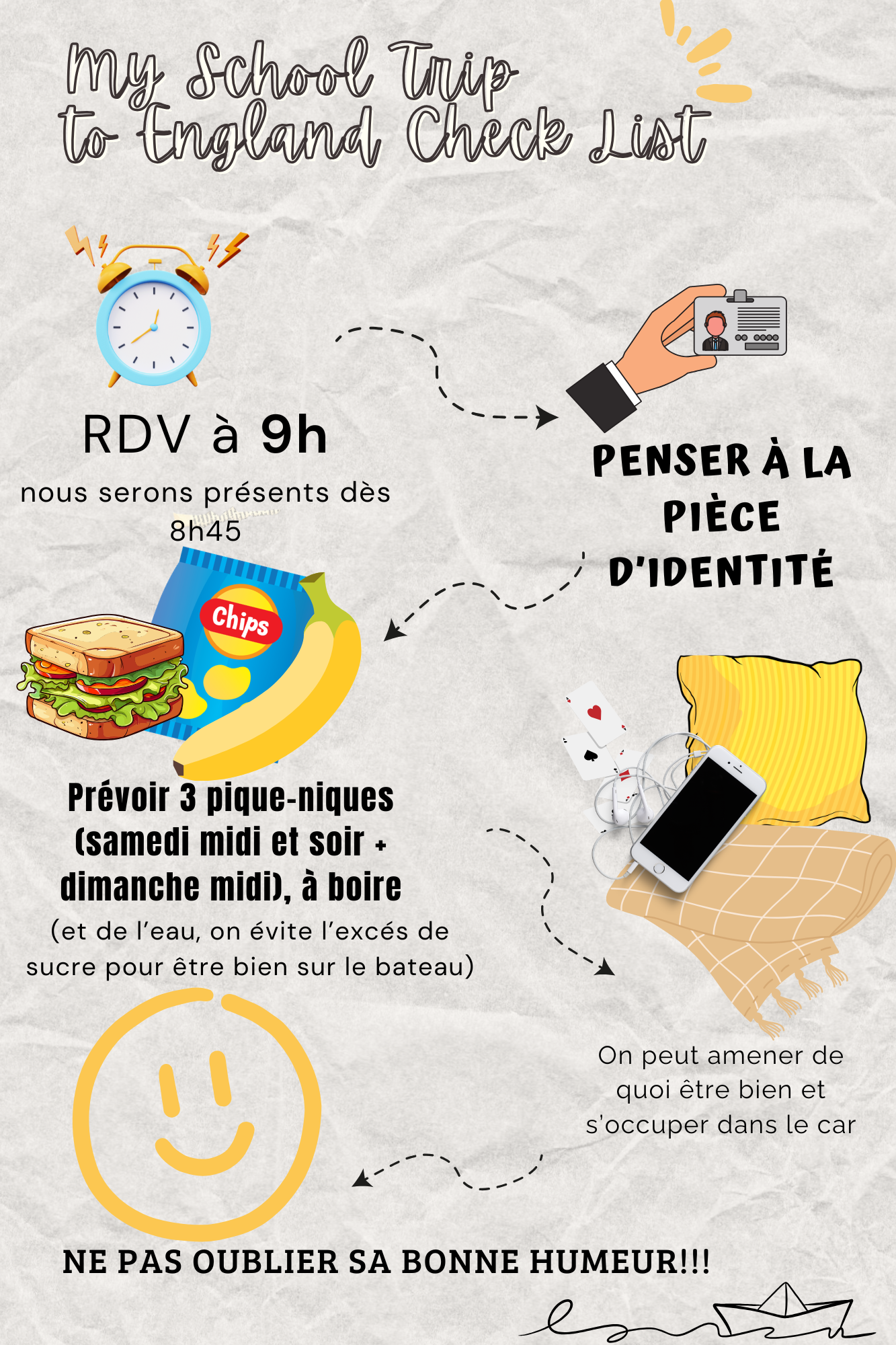 Check list avant le départ pour les élèves